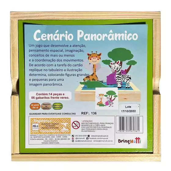 Jogo Cenário Panorâmico de acordo com a tarefa do cartão replique no tabuleiro a ilustração determinada, colocando figuras grandes e pequenas para uma imagem panorâmica. Trabalha concentração, desenvolvimento da coordenação visual e motora, do pensamento espacial e lógico, bem como a atenção, observação e imaginação.