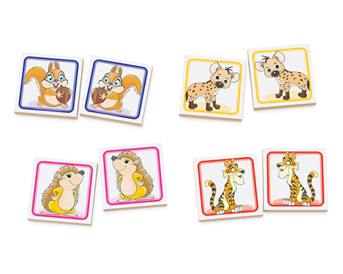 Jogo da memória animais com 42 peças. Feito em madeira de reflorestamento (MDF). Jogo ideal para aprimorar o raciocínio lógico, concentração e atenção.