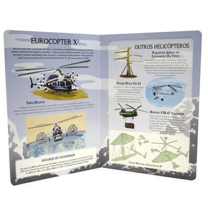 Este livro contém quatro modelos fantásticos, cada um representando um momento-chave na história da aviação. É só destacar os modelos do livro e encaixá-los, não é necessário cola. Assim que os modelos tenham sido montados, o livro se torna um fascinante guia de referência repleto de fatos sobre a história do voo de avião, helicóptero, dirigível e foguete.